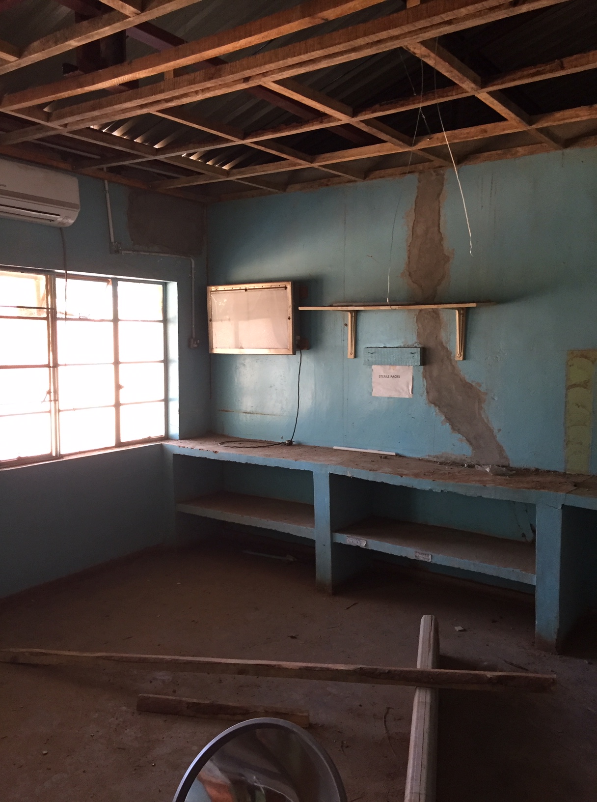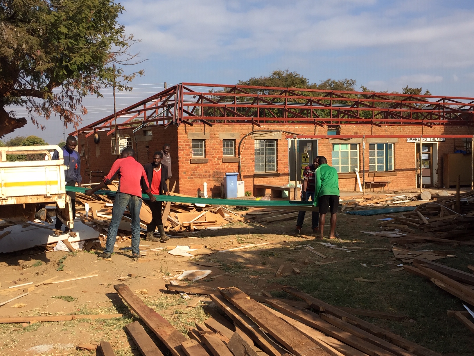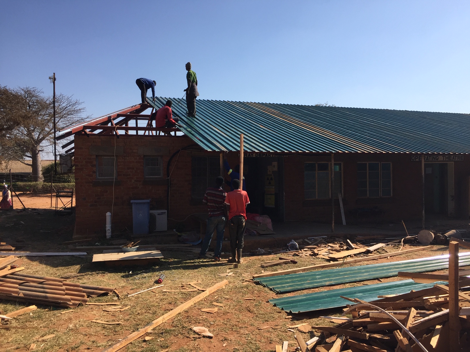 So, we embarked on a “2-week” project which turned into a 2-month project replacing the roof on the old OT (Operating theater or operating room). The roofing team kept to their time schedule of 1 week off with the old and one week on with the new. What we didn’t count for was the destruction of the termites to the wall caps. These we needed to replaster and then repair and paint on the interior walls.