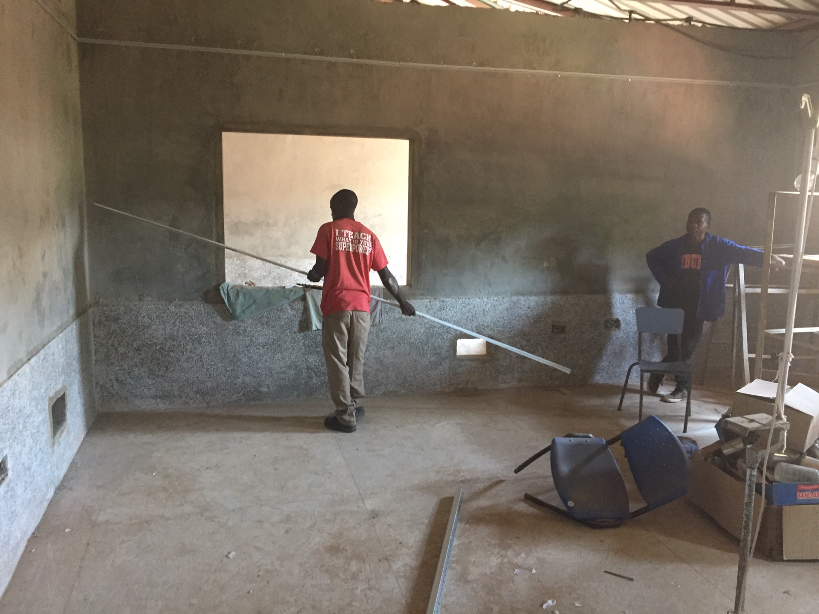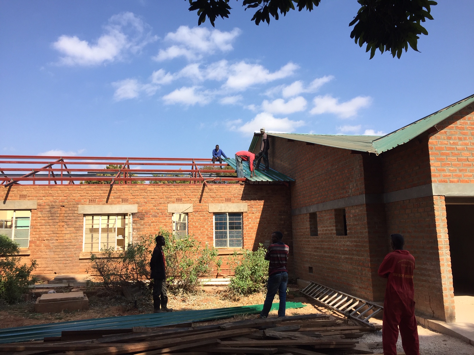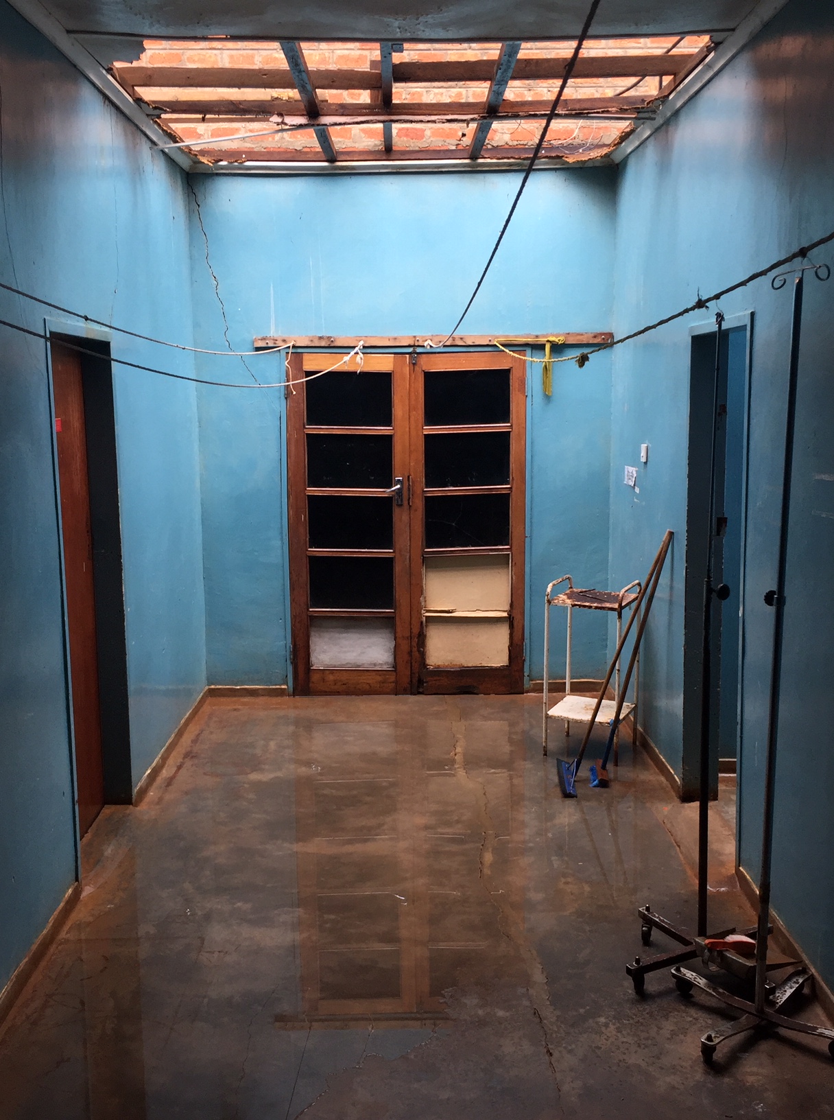 So, we embarked on a “2-week” project which turned into a 2-month project replacing the roof on the old OT (Operating theater or operating room). The roofing team kept to their time schedule of 1 week off with the old and one week on with the new. What we didn’t count for was the destruction of the termites to the wall caps. These we needed to replaster and then repair and paint on the interior walls.